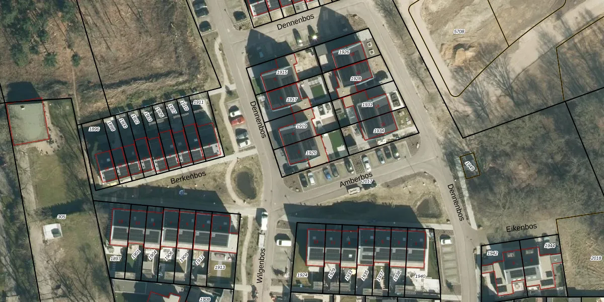 Het perceel waarop Dennenbos 2 staat heeft een oppervlakte van 223 m². Dit is een middelgroot perceel. De perceeloppervlakte wordt geregistreerd door het Kadaster. Gedetailleerde informatie over de maten van dit perceel kunt u vinden in het rapport Kadastrale kaart met maatvoering van Dennenbos 2.