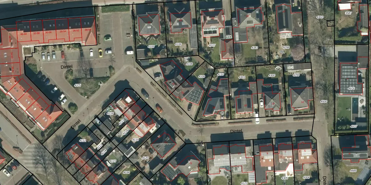 Het perceel waarop Dintel 20 staat heeft een oppervlakte van 367 m². Dit is een groot perceel. De perceeloppervlakte wordt geregistreerd door het Kadaster. Gedetailleerde informatie over de maten van dit perceel kunt u vinden in het rapport Kadastrale kaart met maatvoering van Dintel 20.