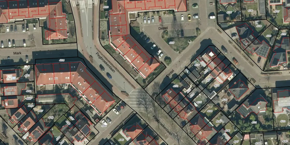 Het perceel waarop Dintel 51 staat heeft een oppervlakte van 2235 m². Dit is een zeer groot perceel. De perceeloppervlakte wordt geregistreerd door het Kadaster. Gedetailleerde informatie over de maten van dit perceel kunt u vinden in het rapport Kadastrale kaart met maatvoering van Dintel 51.