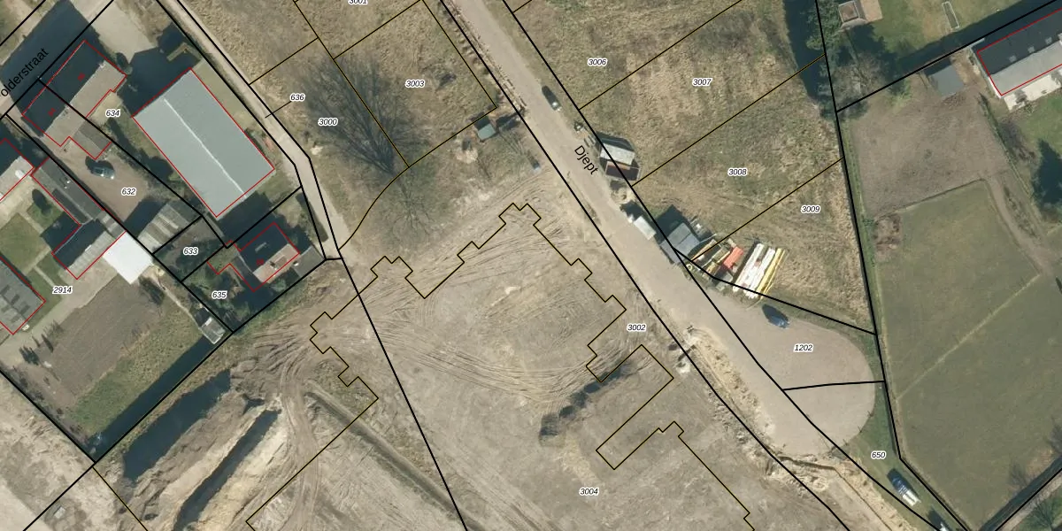Het perceel waarop Djept 43-B staat heeft een oppervlakte van 3844 m². Dit is een zeer groot perceel. De perceeloppervlakte wordt geregistreerd door het Kadaster. Gedetailleerde informatie over de maten van dit perceel kunt u vinden in het rapport Kadastrale kaart met maatvoering van Djept 43-B.