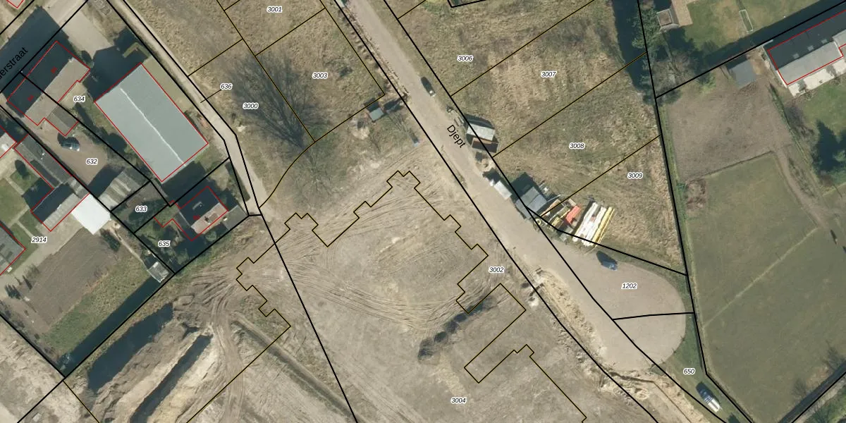 Het perceel waarop Djept 43-D staat heeft een oppervlakte van 3844 m². Dit is een zeer groot perceel. De perceeloppervlakte wordt geregistreerd door het Kadaster. Gedetailleerde informatie over de maten van dit perceel kunt u vinden in het rapport Kadastrale kaart met maatvoering van Djept 43-D.
