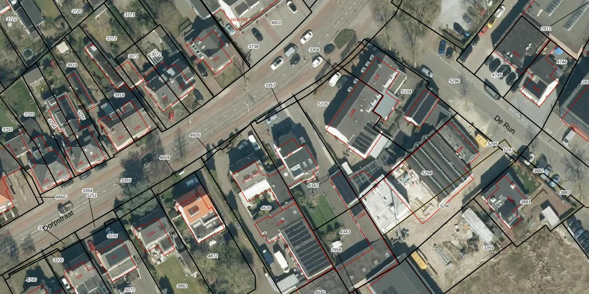 Dorpstraat 116 is gelegen op kadastraal perceel VHV01A4342. Deze kadastrale aanduiding is uniek en wordt gebruikt door het Kadaster om eigendomsrechten en andere zakelijke rechten vast te leggen. Het perceel maakt onderdeel uit van de kadastrale gemeente Veldhoven.