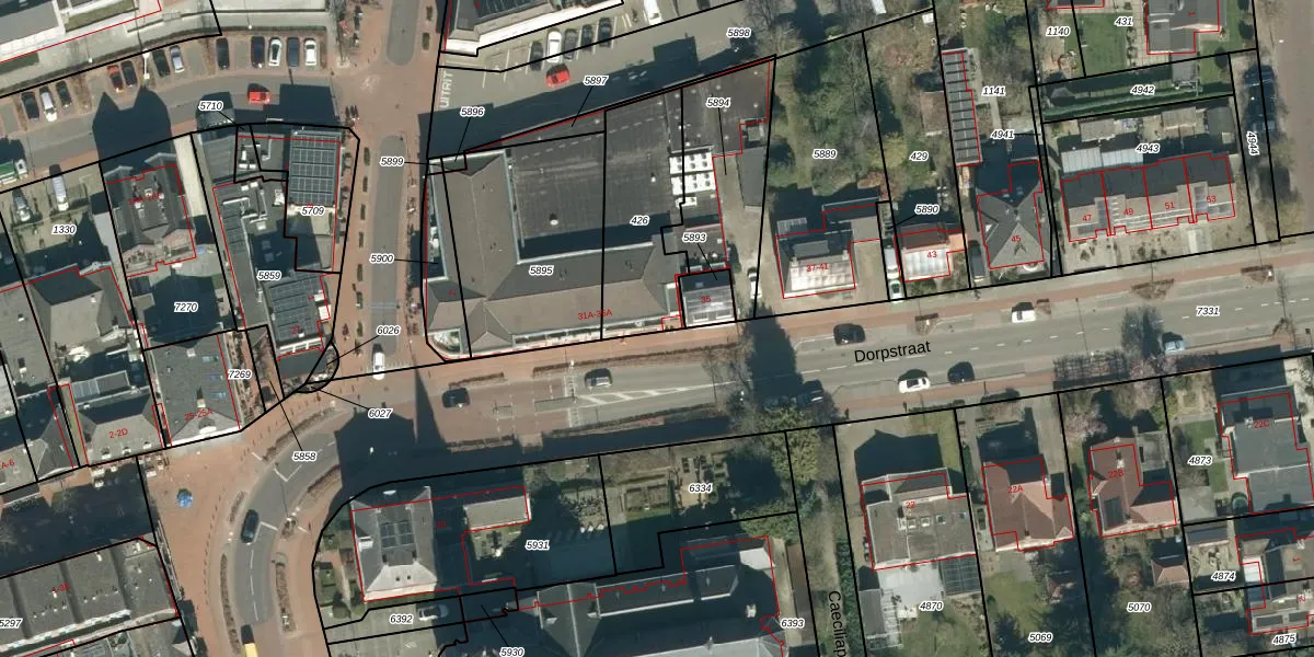 Dorpstraat 33 is gelegen op kadastraal perceel VHV01E426. Deze kadastrale aanduiding is uniek en wordt gebruikt door het Kadaster om eigendomsrechten en andere zakelijke rechten vast te leggen. Het perceel maakt onderdeel uit van de kadastrale gemeente Veldhoven.