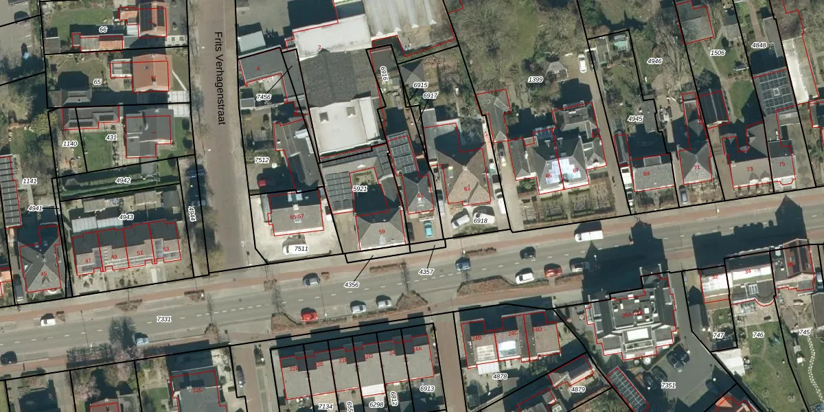 Dorpstraat 61 is gelegen op kadastraal perceel VHV01E6916. Deze kadastrale aanduiding is uniek en wordt gebruikt door het Kadaster om eigendomsrechten en andere zakelijke rechten vast te leggen. Het perceel maakt onderdeel uit van de kadastrale gemeente Veldhoven.