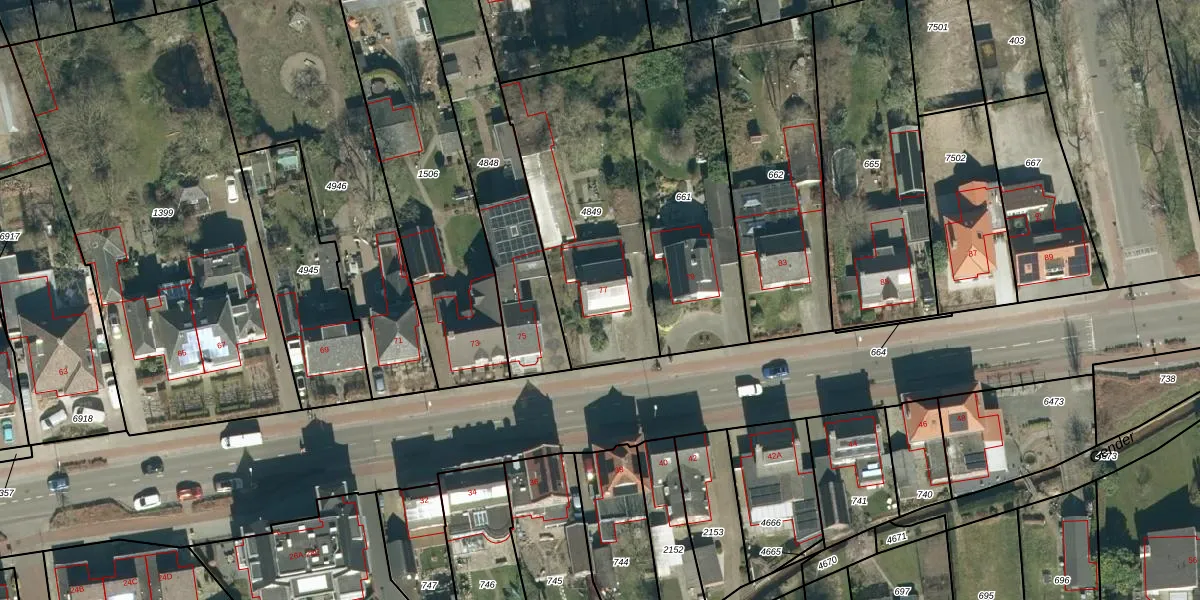 Dorpstraat 77 is gelegen op kadastraal perceel VHV01E4849. Deze kadastrale aanduiding is uniek en wordt gebruikt door het Kadaster om eigendomsrechten en andere zakelijke rechten vast te leggen. Het perceel maakt onderdeel uit van de kadastrale gemeente Veldhoven.