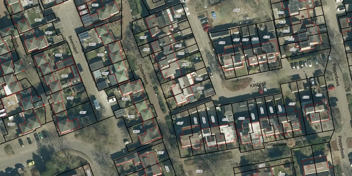 Het perceel waarop Dotterbeek 13 staat heeft een oppervlakte van 223 m². Dit is een middelgroot perceel. De perceeloppervlakte wordt geregistreerd door het Kadaster. Gedetailleerde informatie over de maten van dit perceel kunt u vinden in het rapport Kadastrale kaart met maatvoering van Dotterbeek 13.
