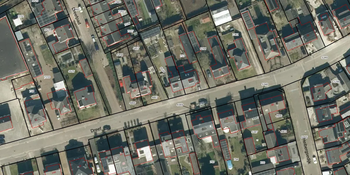 Het perceel waarop Dreef 23 staat heeft een oppervlakte van 510 m². Dit is een groot perceel. De perceeloppervlakte wordt geregistreerd door het Kadaster. Gedetailleerde informatie over de maten van dit perceel kunt u vinden in het rapport Kadastrale kaart met maatvoering van Dreef 23.
