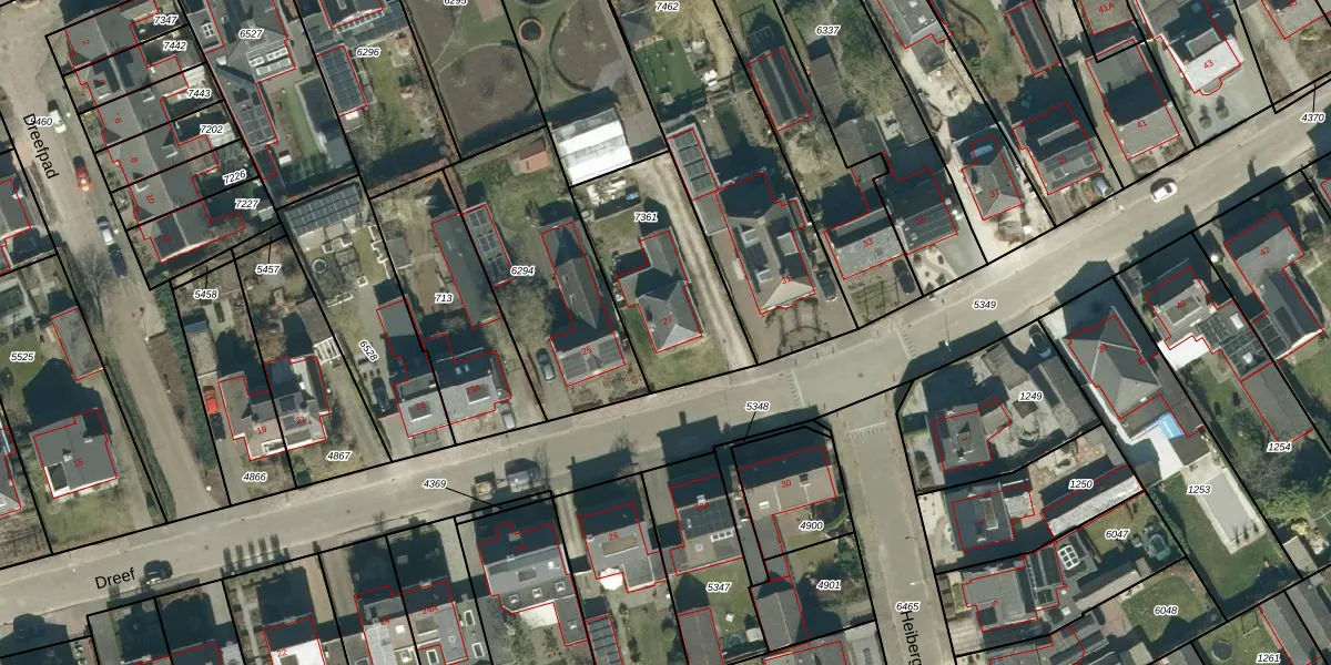 Het perceel waarop Dreef 27 staat heeft een oppervlakte van 544 m². Dit is een groot perceel. De perceeloppervlakte wordt geregistreerd door het Kadaster. Gedetailleerde informatie over de maten van dit perceel kunt u vinden in het rapport Kadastrale kaart met maatvoering van Dreef 27.