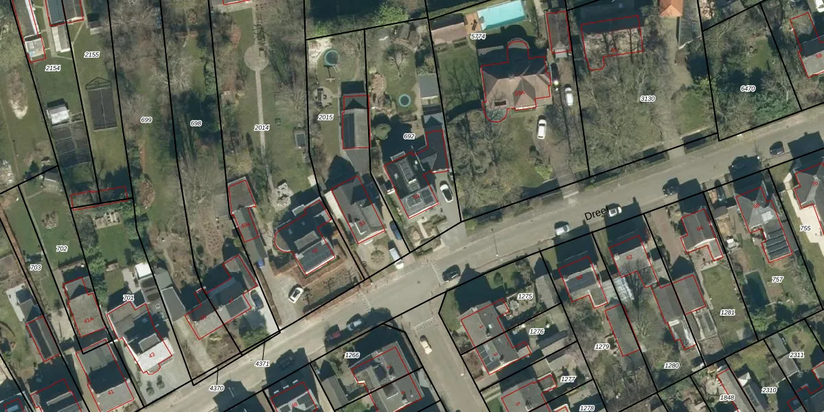 Het perceel waarop Dreef 53 staat heeft een oppervlakte van 920 m². Dit is een groot perceel. De perceeloppervlakte wordt geregistreerd door het Kadaster. Gedetailleerde informatie over de maten van dit perceel kunt u vinden in het rapport Kadastrale kaart met maatvoering van Dreef 53.