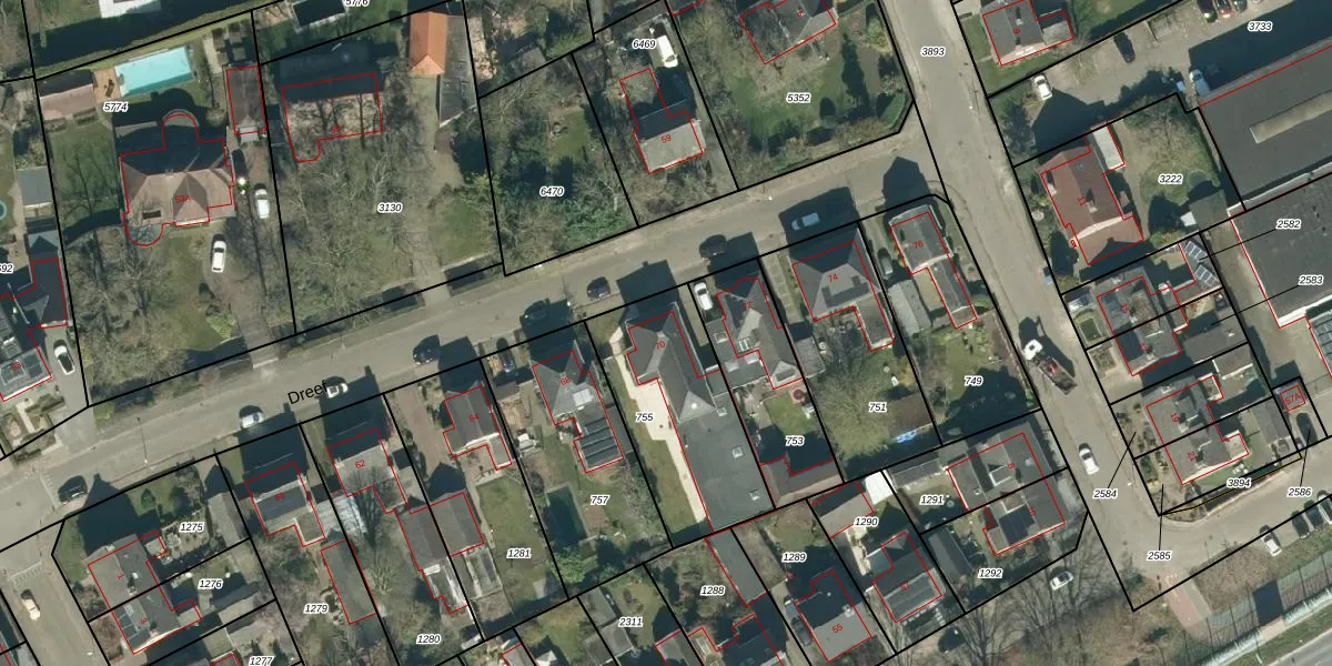 Het perceel waarop Dreef 70 staat heeft een oppervlakte van 606 m². Dit is een groot perceel. De perceeloppervlakte wordt geregistreerd door het Kadaster. Gedetailleerde informatie over de maten van dit perceel kunt u vinden in het rapport Kadastrale kaart met maatvoering van Dreef 70.