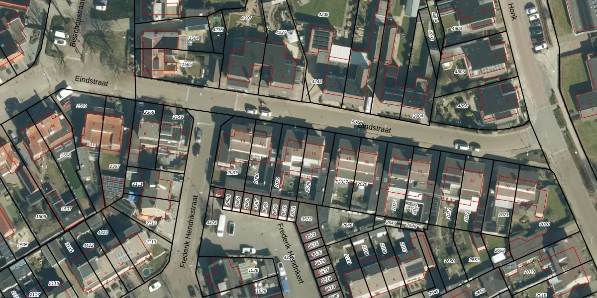Eindstraat 14 is gelegen op kadastraal perceel VHV01D2029. Deze kadastrale aanduiding is uniek en wordt gebruikt door het Kadaster om eigendomsrechten en andere zakelijke rechten vast te leggen. Het perceel maakt onderdeel uit van de kadastrale gemeente Veldhoven.