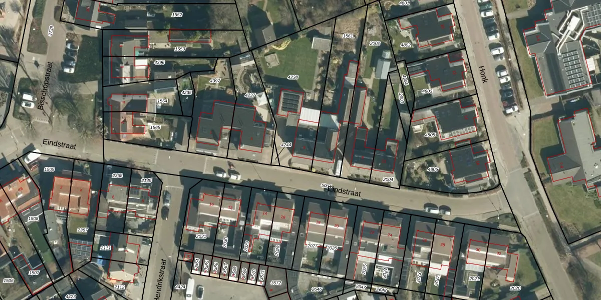 Eindstraat 5 is gelegen op kadastraal perceel VHV01D4238. Deze kadastrale aanduiding is uniek en wordt gebruikt door het Kadaster om eigendomsrechten en andere zakelijke rechten vast te leggen. Het perceel maakt onderdeel uit van de kadastrale gemeente Veldhoven.