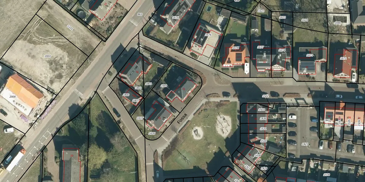 Het perceel waarop Fossa 21 staat heeft een oppervlakte van 430 m². Dit is een groot perceel. De perceeloppervlakte wordt geregistreerd door het Kadaster. Gedetailleerde informatie over de maten van dit perceel kunt u vinden in het rapport Kadastrale kaart met maatvoering van Fossa 21.