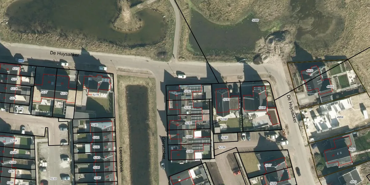 Gebruik de zoekbalk of klik op een perceel voor informatie over de adressen binnen dit perceel.