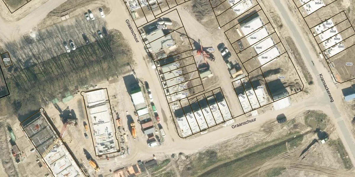 Het perceel waarop Graanschuur 11 staat heeft een oppervlakte van 91 m². Dit is een klein perceel. De perceeloppervlakte wordt geregistreerd door het Kadaster. Gedetailleerde informatie over de maten van dit perceel kunt u vinden in het rapport Kadastrale kaart met maatvoering van Graanschuur 11.