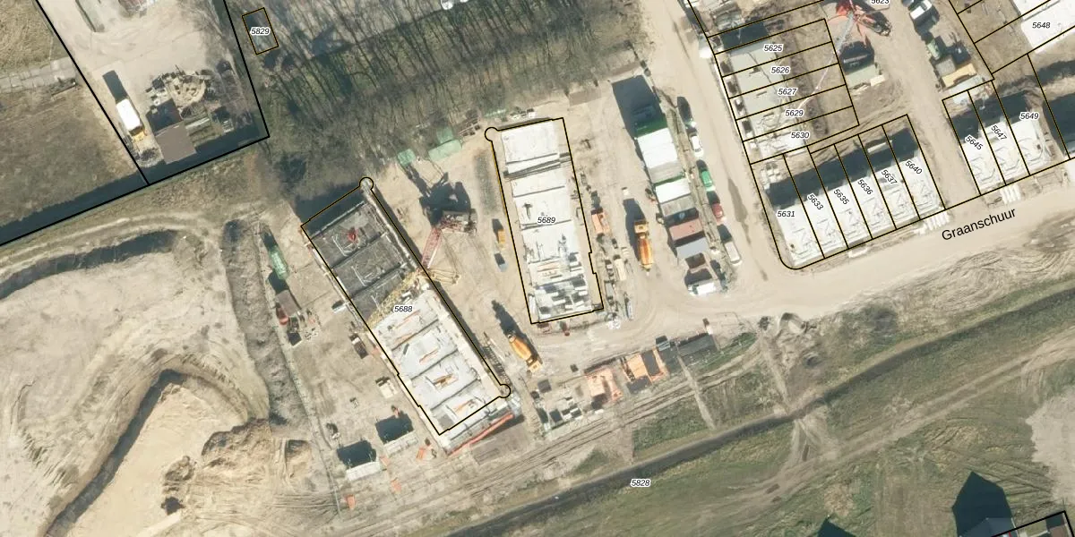Het perceel waarop Graanschuur 34 staat heeft een oppervlakte van 505 m². Dit is een groot perceel. De perceeloppervlakte wordt geregistreerd door het Kadaster. Gedetailleerde informatie over de maten van dit perceel kunt u vinden in het rapport Kadastrale kaart met maatvoering van Graanschuur 34.