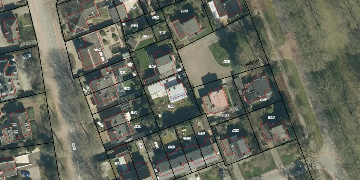 Het perceel waarop Halleyhof 3 staat heeft een oppervlakte van 665 m². Dit is een groot perceel. De perceeloppervlakte wordt geregistreerd door het Kadaster. Gedetailleerde informatie over de maten van dit perceel kunt u vinden in het rapport Kadastrale kaart met maatvoering van Halleyhof 3.