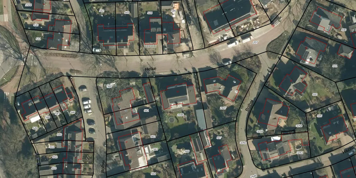 Het perceel waarop Heike 10 staat heeft een oppervlakte van 877 m². Dit is een groot perceel. De perceeloppervlakte wordt geregistreerd door het Kadaster. Gedetailleerde informatie over de maten van dit perceel kunt u vinden in het rapport Kadastrale kaart met maatvoering van Heike 10.