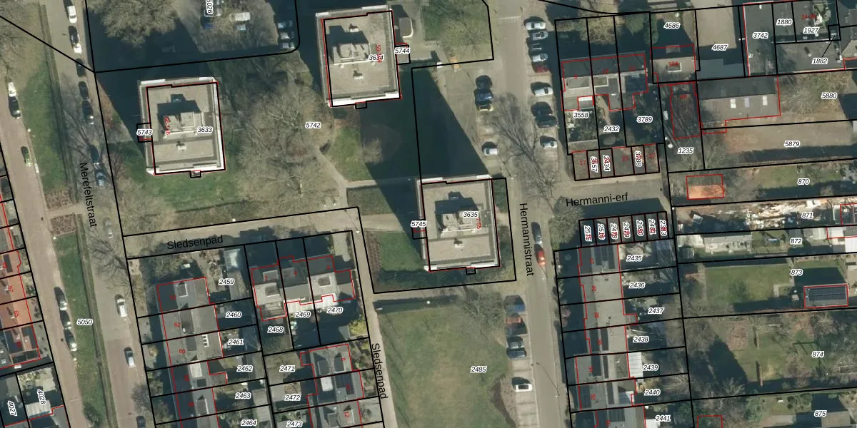 Hermannistraat 33 is gelegen op kadastraal perceel VHV01D3635. Deze kadastrale aanduiding is uniek en wordt gebruikt door het Kadaster om eigendomsrechten en andere zakelijke rechten vast te leggen. Het perceel maakt onderdeel uit van de kadastrale gemeente Veldhoven.