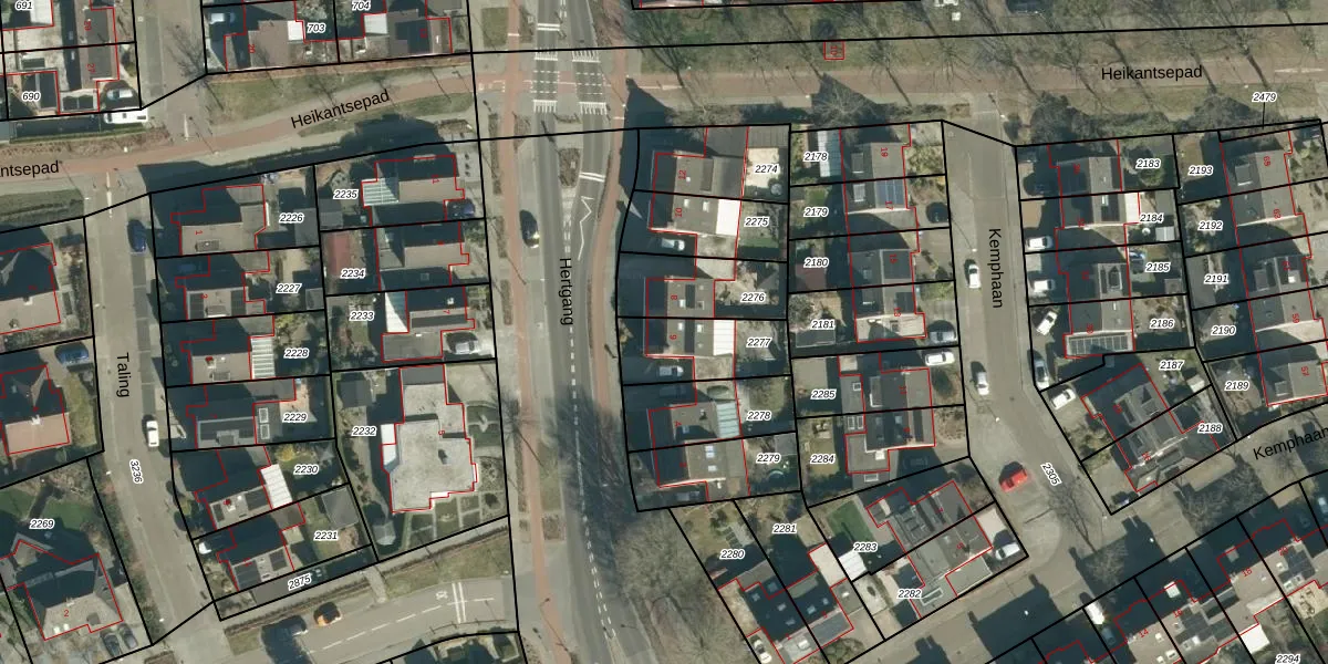 Het perceel waarop het adres ligt is VHV01-I-2277. De afkorting 'VHV01' staat voor kadastrale gemeente Veldhoven. Het perceel is kleiner dan gemiddeld in Veldhoven. Het perceel is 239 m² groot, terwijl het gemiddelde ligt op 1485,46 m². Het grootste perceel in de kadastrale gemeente is 78,9 ha. Het kleinste perceel heeft een oppervlakte van 0 m². Dit is het enige adres dat aanwezig is op het perceel. In de Basisregistratie Kadaster (BRK) werden de grenzen van het perceel geregistreerd op 18-04-2012.