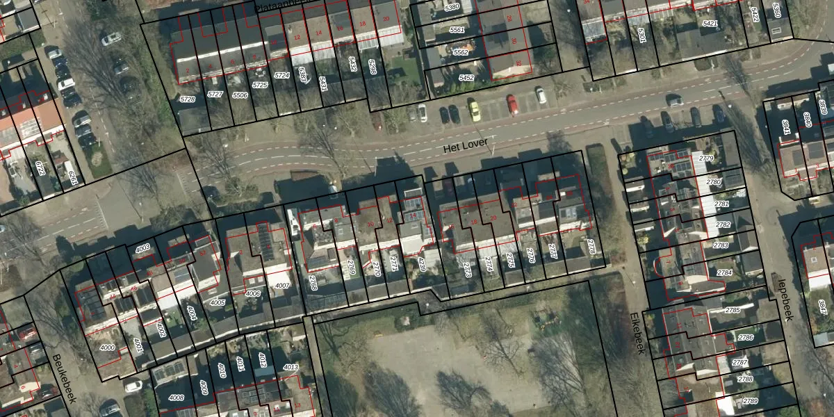 Het Lover 14 is gelegen op kadastraal perceel VHV01D4239. Deze kadastrale aanduiding is uniek en wordt gebruikt door het Kadaster om eigendomsrechten en andere zakelijke rechten vast te leggen. Het perceel maakt onderdeel uit van de kadastrale gemeente Veldhoven.
