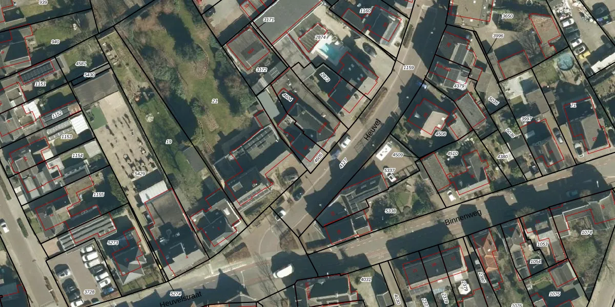 Het perceel waarop Heuvel 60 staat heeft een oppervlakte van 195 m². Dit is een middelgroot perceel. De perceeloppervlakte wordt geregistreerd door het Kadaster. Gedetailleerde informatie over de maten van dit perceel kunt u vinden in het rapport Kadastrale kaart met maatvoering van Heuvel 60.