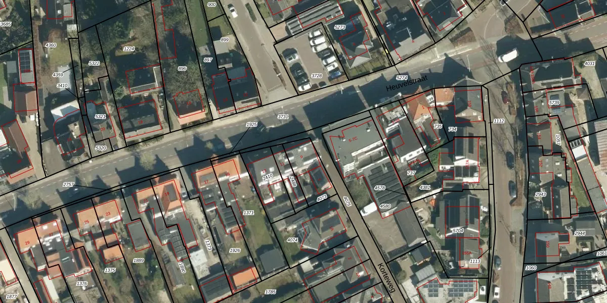 Heuvelstraat 9 is gelegen op kadastraal perceel VHV01D4073. Deze kadastrale aanduiding is uniek en wordt gebruikt door het Kadaster om eigendomsrechten en andere zakelijke rechten vast te leggen. Het perceel maakt onderdeel uit van de kadastrale gemeente Veldhoven.