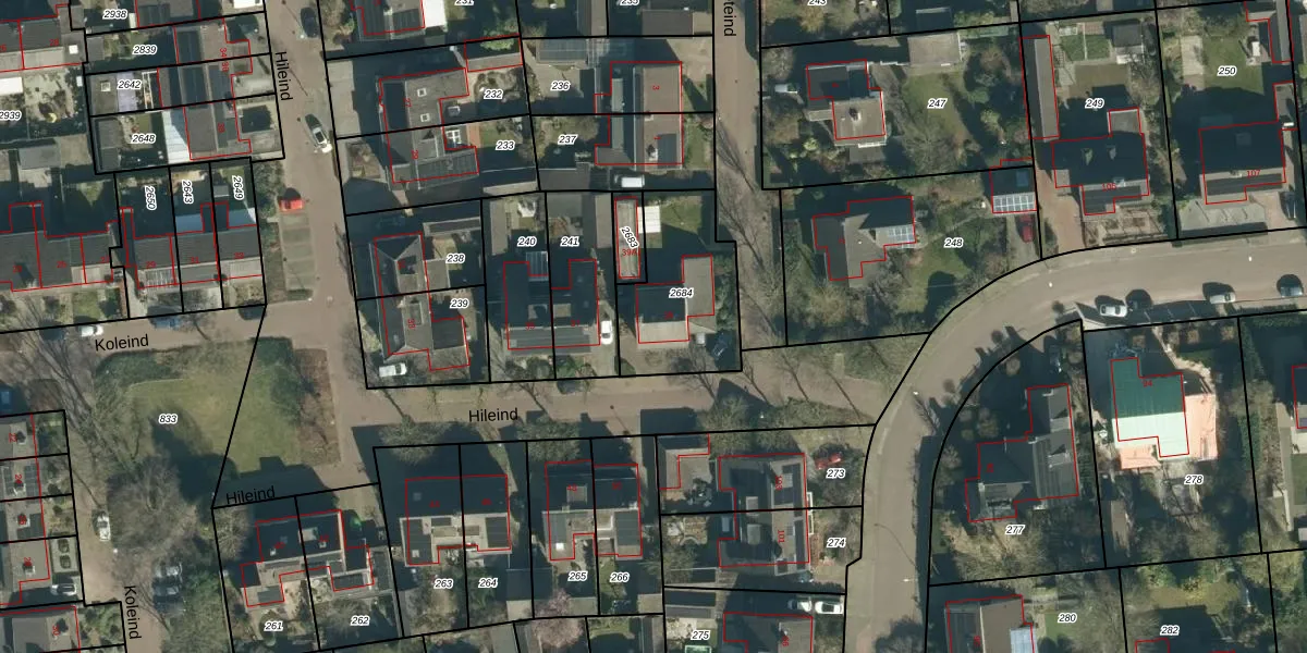 Hileind 39 is gelegen op kadastraal perceel VHV01K2684. Deze kadastrale aanduiding is uniek en wordt gebruikt door het Kadaster om eigendomsrechten en andere zakelijke rechten vast te leggen. Het perceel maakt onderdeel uit van de kadastrale gemeente Veldhoven.