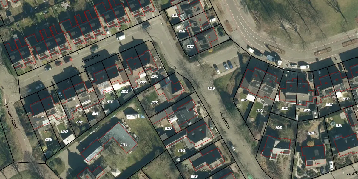 Het perceel waarop Hoevehei 18 staat heeft een oppervlakte van 433 m². Dit is een groot perceel. De perceeloppervlakte wordt geregistreerd door het Kadaster. Gedetailleerde informatie over de maten van dit perceel kunt u vinden in het rapport Kadastrale kaart met maatvoering van Hoevehei 18.