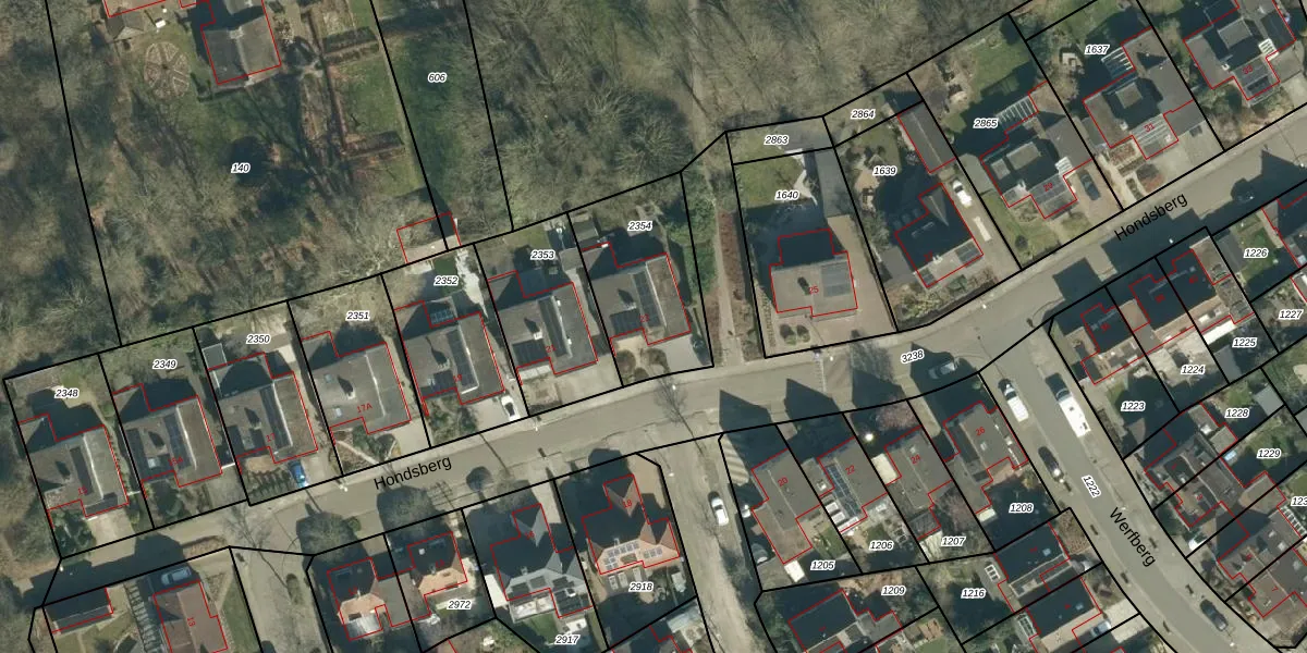Het perceel waarop Hondsberg 23 staat heeft een oppervlakte van 470 m². Dit is een groot perceel. De perceeloppervlakte wordt geregistreerd door het Kadaster. Gedetailleerde informatie over de maten van dit perceel kunt u vinden in het rapport Kadastrale kaart met maatvoering van Hondsberg 23.