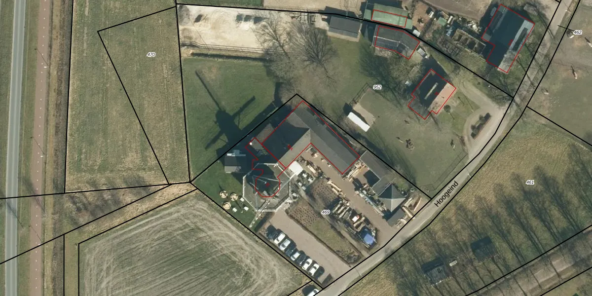 Het perceel waarop Hoogeind 35-A staat heeft een oppervlakte van 2739 m². Dit is een zeer groot perceel. De perceeloppervlakte wordt geregistreerd door het Kadaster. Gedetailleerde informatie over de maten van dit perceel kunt u vinden in het rapport Kadastrale kaart met maatvoering van Hoogeind 35-A.