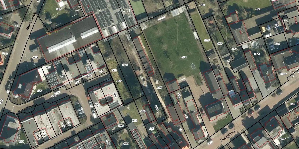 Het perceel waarop Hoogstraat 69-B staat heeft een oppervlakte van 760 m². Dit is een groot perceel. De perceeloppervlakte wordt geregistreerd door het Kadaster. Gedetailleerde informatie over de maten van dit perceel kunt u vinden in het rapport Kadastrale kaart met maatvoering van Hoogstraat 69-B.