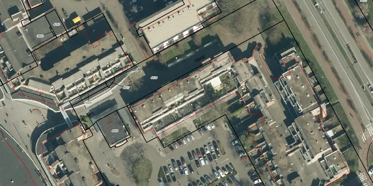 Het perceel waarop Horst 44 staat heeft een oppervlakte van 1,4 ha. Dit is een zeer groot perceel. De perceeloppervlakte wordt geregistreerd door het Kadaster. Gedetailleerde informatie over de maten van dit perceel kunt u vinden in het rapport Kadastrale kaart met maatvoering van Horst 44.