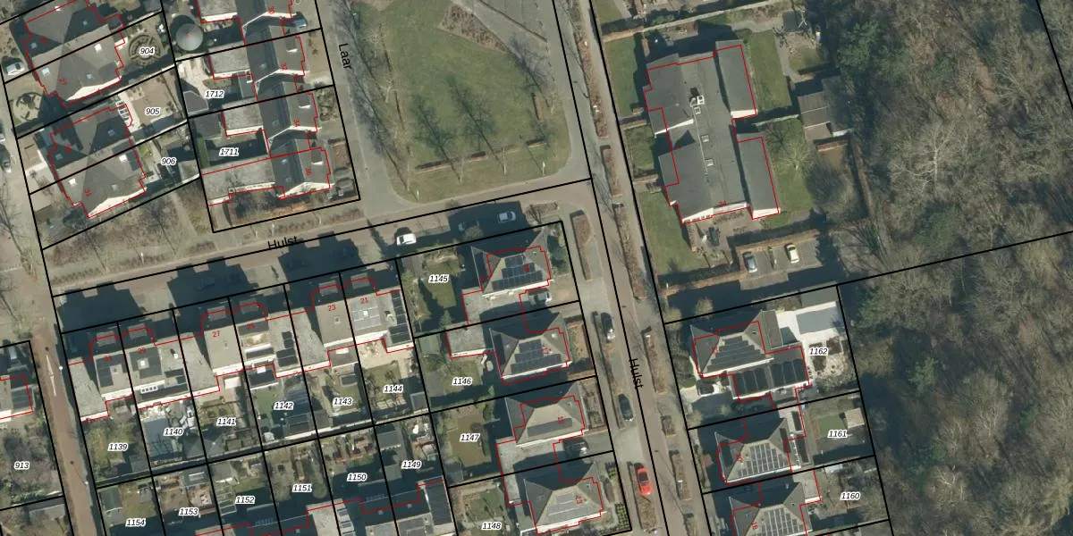 Het perceel waarop Hulst 19 staat heeft een oppervlakte van 484 m². Dit is een groot perceel. De perceeloppervlakte wordt geregistreerd door het Kadaster. Gedetailleerde informatie over de maten van dit perceel kunt u vinden in het rapport Kadastrale kaart met maatvoering van Hulst 19.