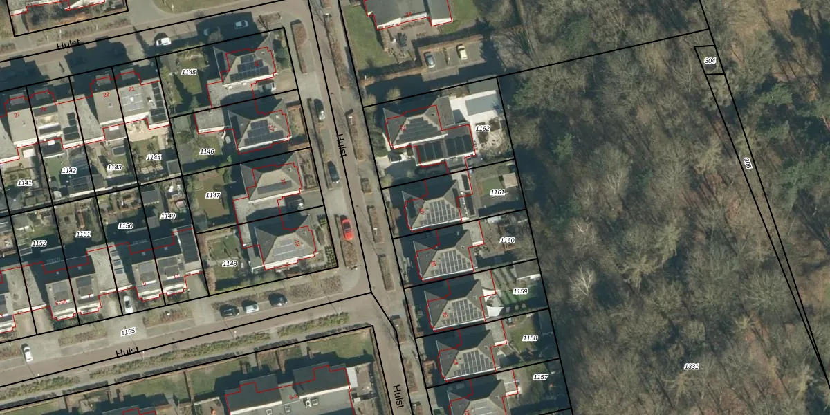Het perceel waarop Hulst 20 staat heeft een oppervlakte van 407 m². Dit is een groot perceel. De perceeloppervlakte wordt geregistreerd door het Kadaster. Gedetailleerde informatie over de maten van dit perceel kunt u vinden in het rapport Kadastrale kaart met maatvoering van Hulst 20.