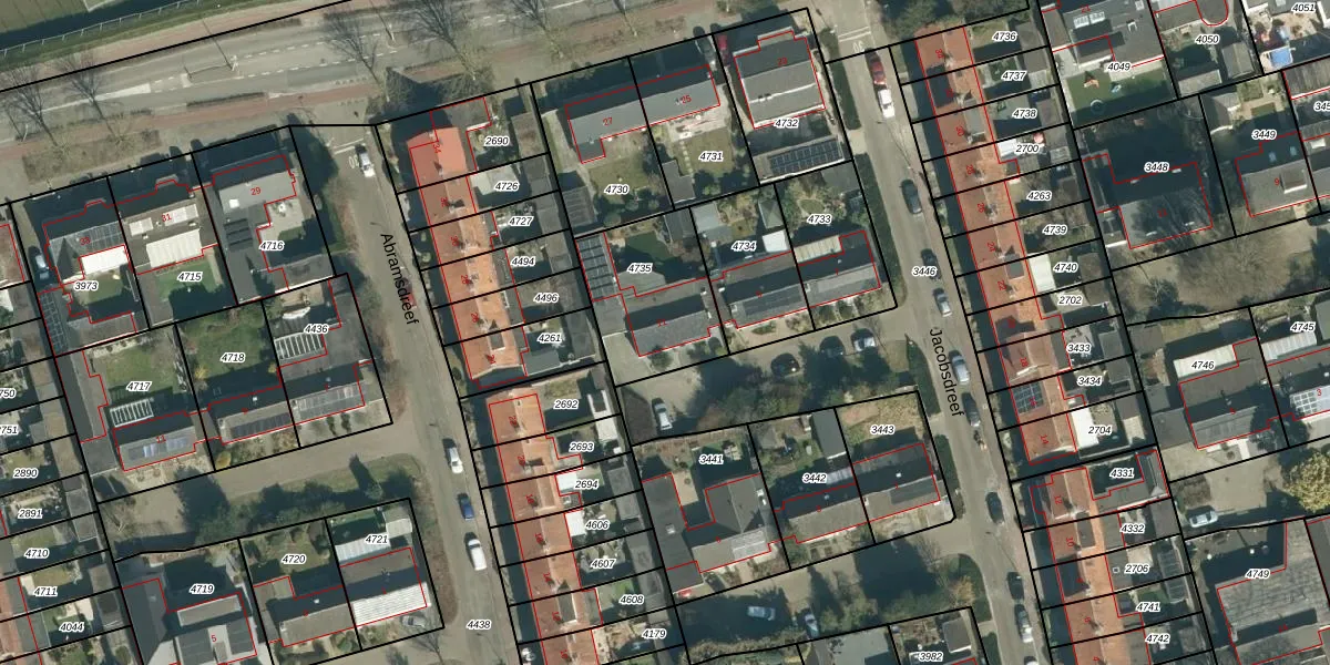 Gebruik de zoekbalk of klik op een perceel voor informatie over de adressen binnen dit perceel.