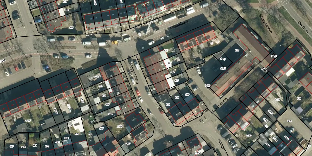 Joppenberg 5 is gelegen op kadastraal perceel VHV01I822. Deze kadastrale aanduiding is uniek en wordt gebruikt door het Kadaster om eigendomsrechten en andere zakelijke rechten vast te leggen. Het perceel maakt onderdeel uit van de kadastrale gemeente Veldhoven.