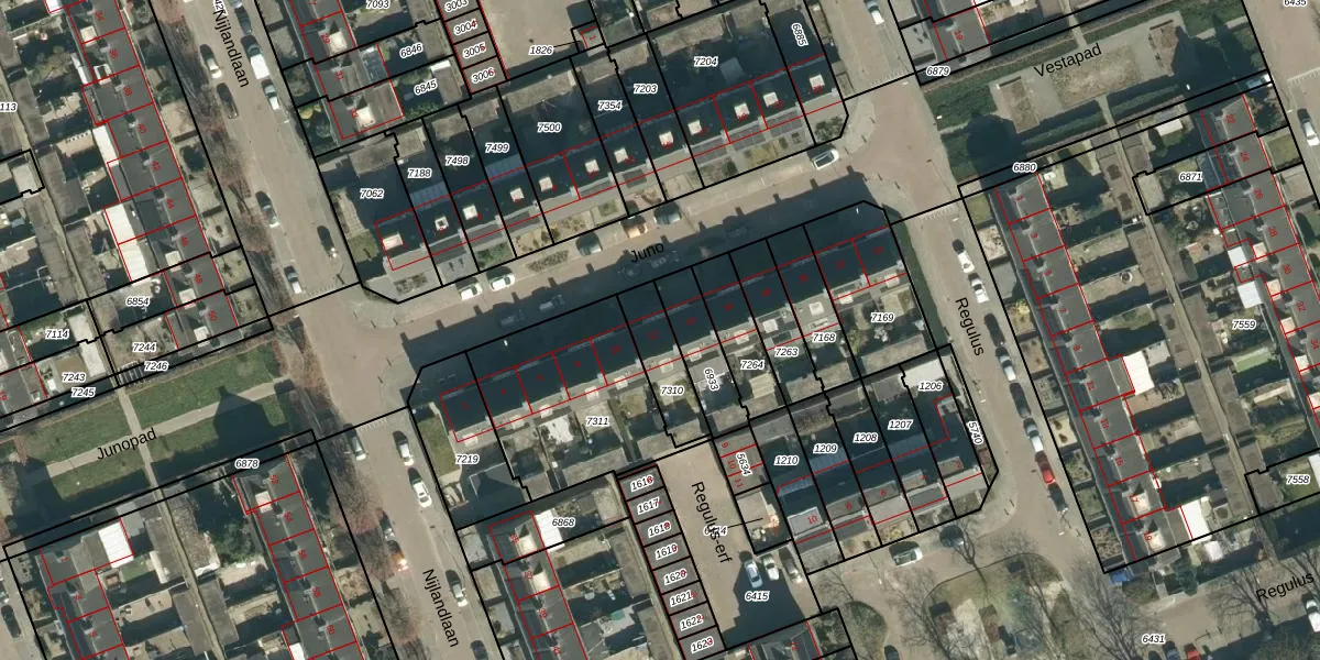 Het perceel waarop Juno 12 staat heeft een oppervlakte van 151 m². Dit is een middelgroot perceel. De perceeloppervlakte wordt geregistreerd door het Kadaster. Gedetailleerde informatie over de maten van dit perceel kunt u vinden in het rapport Kadastrale kaart met maatvoering van Juno 12.