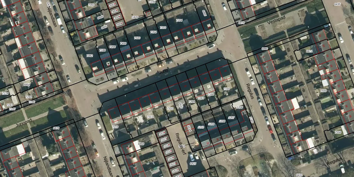 Het perceel waarop Juno 14 staat heeft een oppervlakte van 156 m². Dit is een middelgroot perceel. De perceeloppervlakte wordt geregistreerd door het Kadaster. Gedetailleerde informatie over de maten van dit perceel kunt u vinden in het rapport Kadastrale kaart met maatvoering van Juno 14.