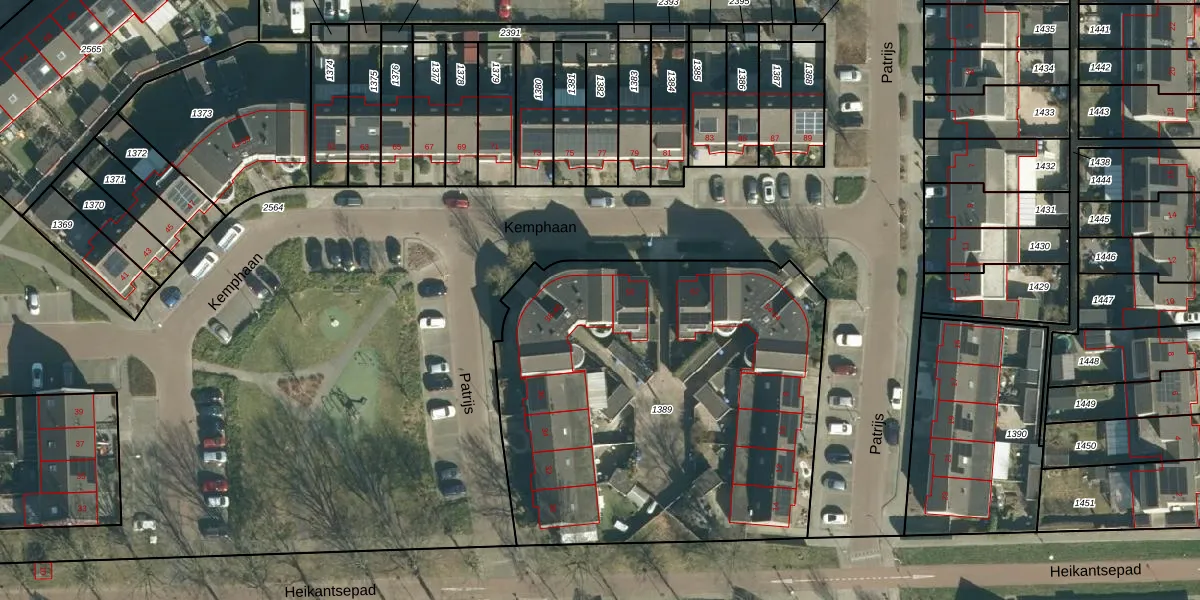 Het perceel waarop Kemphaan 44 staat heeft een oppervlakte van 2418 m². Dit is een zeer groot perceel. De perceeloppervlakte wordt geregistreerd door het Kadaster. Gedetailleerde informatie over de maten van dit perceel kunt u vinden in het rapport Kadastrale kaart met maatvoering van Kemphaan 44.