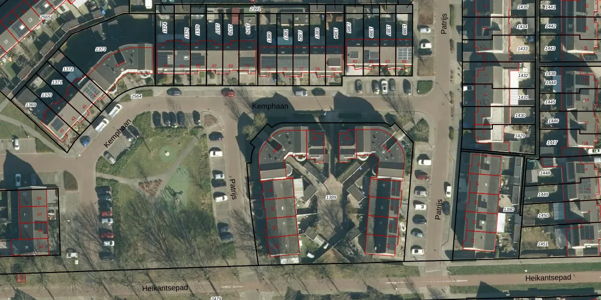 Het perceel waarop Kemphaan 48 staat heeft een oppervlakte van 2418 m². Dit is een zeer groot perceel. De perceeloppervlakte wordt geregistreerd door het Kadaster. Gedetailleerde informatie over de maten van dit perceel kunt u vinden in het rapport Kadastrale kaart met maatvoering van Kemphaan 48.