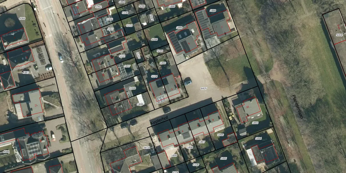 Het perceel waarop Keplerhof 3 staat heeft een oppervlakte van 315 m². Dit is een groot perceel. De perceeloppervlakte wordt geregistreerd door het Kadaster. Gedetailleerde informatie over de maten van dit perceel kunt u vinden in het rapport Kadastrale kaart met maatvoering van Keplerhof 3.