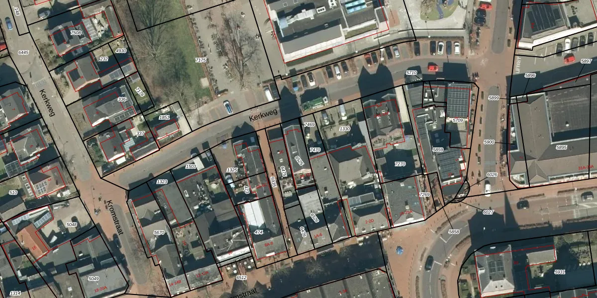 Kerkweg 1-B is gelegen op kadastraal perceel VHV01E6525. Deze kadastrale aanduiding is uniek en wordt gebruikt door het Kadaster om eigendomsrechten en andere zakelijke rechten vast te leggen. Het perceel maakt onderdeel uit van de kadastrale gemeente Veldhoven.