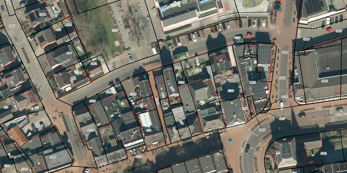 Kerkweg 1-C is gelegen op kadastraal perceel VHV01E6525. Deze kadastrale aanduiding is uniek en wordt gebruikt door het Kadaster om eigendomsrechten en andere zakelijke rechten vast te leggen. Het perceel maakt onderdeel uit van de kadastrale gemeente Veldhoven.