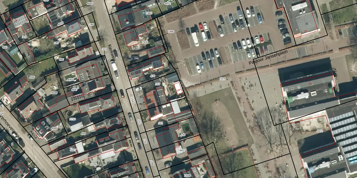 Kerkweg 18-A is gelegen op kadastraal perceel VHV01E153. Deze kadastrale aanduiding is uniek en wordt gebruikt door het Kadaster om eigendomsrechten en andere zakelijke rechten vast te leggen. Het perceel maakt onderdeel uit van de kadastrale gemeente Veldhoven.