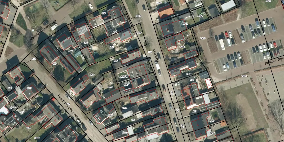 Kerkweg 27 is gelegen op kadastraal perceel VHV01E4454. Deze kadastrale aanduiding is uniek en wordt gebruikt door het Kadaster om eigendomsrechten en andere zakelijke rechten vast te leggen. Het perceel maakt onderdeel uit van de kadastrale gemeente Veldhoven.