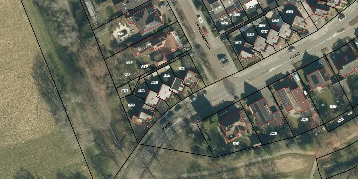 Kievit 54 is gelegen op kadastraal perceel VHV01I2572. Deze kadastrale aanduiding is uniek en wordt gebruikt door het Kadaster om eigendomsrechten en andere zakelijke rechten vast te leggen. Het perceel maakt onderdeel uit van de kadastrale gemeente Veldhoven.