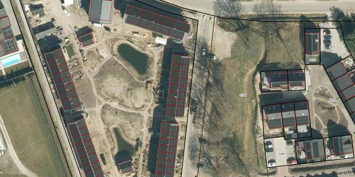 Het perceel waarop Klein Oers 13 staat heeft een oppervlakte van 8744 m². Dit is een zeer groot perceel. De perceeloppervlakte wordt geregistreerd door het Kadaster. Gedetailleerde informatie over de maten van dit perceel kunt u vinden in het rapport Kadastrale kaart met maatvoering van Klein Oers 13.