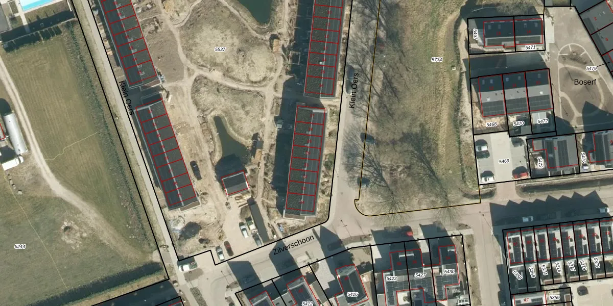 Het perceel waarop Klein Oers 20 staat heeft een oppervlakte van 8744 m². Dit is een zeer groot perceel. De perceeloppervlakte wordt geregistreerd door het Kadaster. Gedetailleerde informatie over de maten van dit perceel kunt u vinden in het rapport Kadastrale kaart met maatvoering van Klein Oers 20.