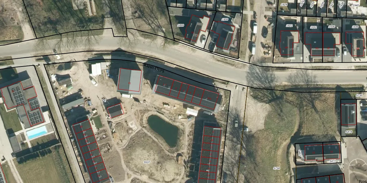Het perceel waarop Klein Oers 3 staat heeft een oppervlakte van 8744 m². Dit is een zeer groot perceel. De perceeloppervlakte wordt geregistreerd door het Kadaster. Gedetailleerde informatie over de maten van dit perceel kunt u vinden in het rapport Kadastrale kaart met maatvoering van Klein Oers 3.